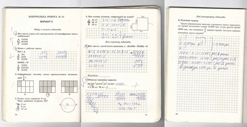дело в том, что ребенок соображает хорошо, но вот неаккуратно пишет, поэтому по контрольным по математике, например, при правильно решенных заданиях и выполненной задаче из другого варианта получает не больше 9 (из-за помарок). Поэтому я и спрашиваю в каком виде тесты - по принципу выбора правильного варианта ответа на вопросы или по принципу наших советских контрольных?