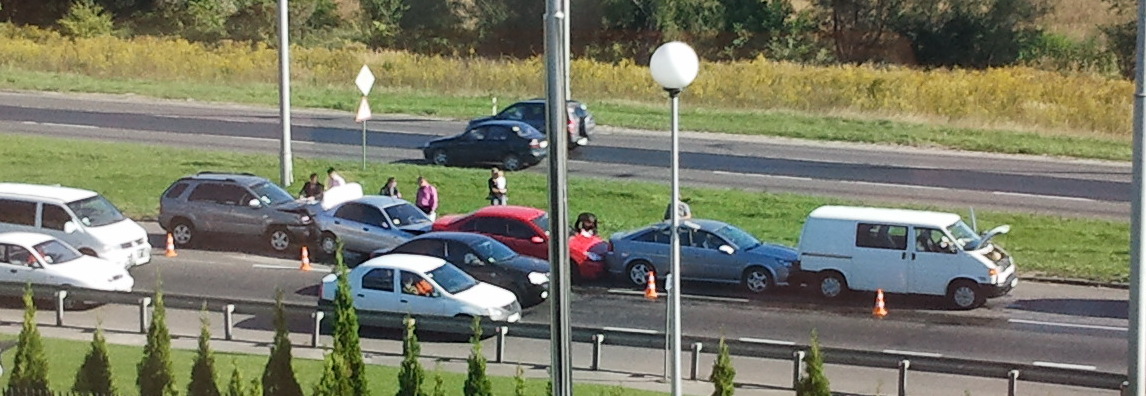 мне больше интересно, чего КИА не тормозил Они сейчас разъезжаются: судя по повреждениям, вполне может быть, что они все остановились, а он их потом спрессовал. Потому как повреждения у второй авто самые слабые - бампера поцарапаны и номер отпал, у третьей посерьёзнее только сзади, передок тоже практически целый, а у ланоса четвёртого вообще глына с обоих сторон, своим ходом не уехал.....