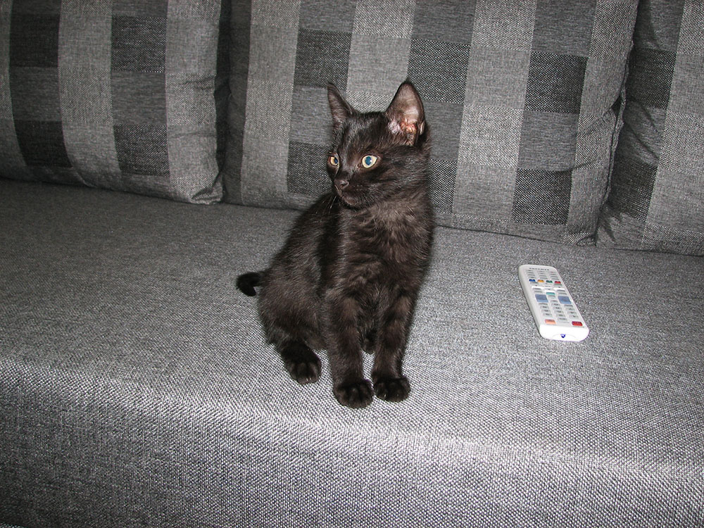Вчера вечером услышали писк под дверью, открываем - а там маленький черный котенок. Живем на 14 этаже, сам он сюда попасть никак не мог. Какая-то бестолочь вероятно взяла себе котенка, а потом выбросила Заберите, кому нужен такой красавец. У нас живет уже один, большой. Второй будет лишним