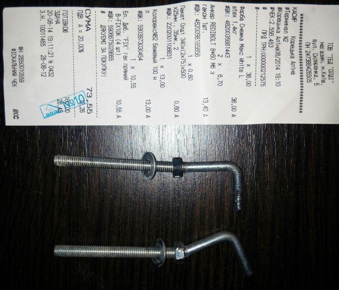 Ford-Noks 27.09.2012 12:32 пишет: о, я щось пропустив про анкер. гайка ж не для кріплення чогось, а саме для фіксації анкера у стіні. ти гайки взагалі закрутив міцно? якщо так, затягнув гайки а потім повісив поверх гайок на гачки, то нічого жахливого не бачу, крюки не розігне, анкери не вирве.
