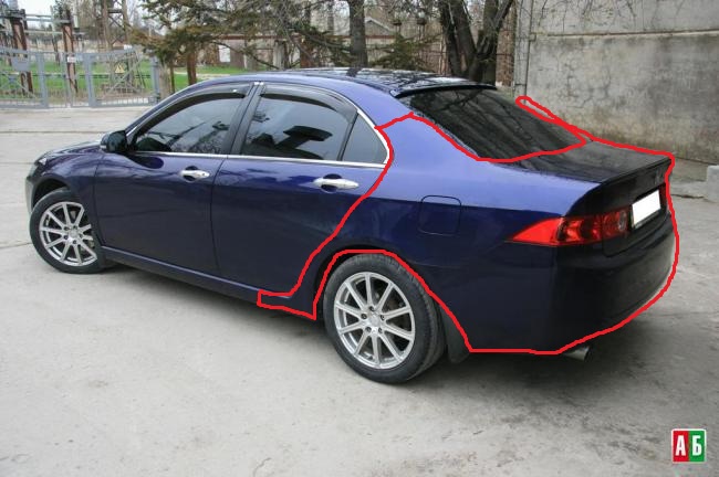 Хотелось бы для себя прояснить, нормальна ли цена за выделенный красным участок (сам зад, багажник, часть стоек и порогов, бампер) - 6000 грн.? (типа по 1500 грн. деталь - 4 детали) Спасибо.