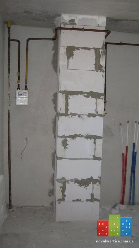 я так зрозумів що та біла виступаюча фігня посеред стіни то димохід? тоді як ви збираєтесь вже проведену розводку води чиї труби торчать зі стяжки мимо того димоходу акуратно протягнути в кут? і не розкрита тема куда заведений газ. якщо його теж треба буде мимо димоходу тягнути то ой - краще вже залишити так як є.