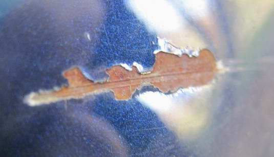 длина царапины порядка 2,5 см, ржавчина только появилась.
