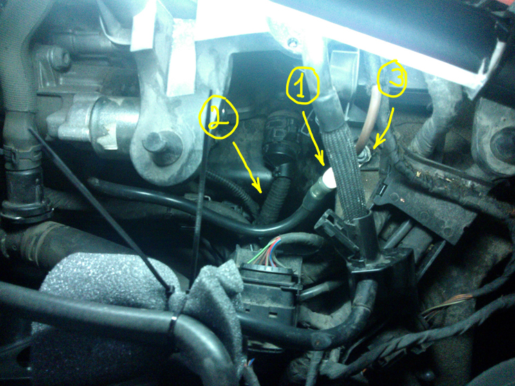 Проблема: деталь 1K0 971 228 M — это провод плюсовой от КПП. Ента деталь (1) была прикручена в точке (3) таким образом, что ложилась крест на крест на деталь (2), упираясь в нее, вероятно из-за того, что в точке (3) изначально прикручена была на 10:00 часов, что привело к тому, что со временем из постоянной вибрации двигателя и от постоянного трения о деталь (2) деталь 1K0 971 228 M перетерлась и… вуаля! у машины больше нет коробки передач, т.е. она то есть, но машина ее больше не видит из-за перетертой проводки. Выглядело это так как будто ножом аккуратно вырезан кусман кабеля около 3 см.