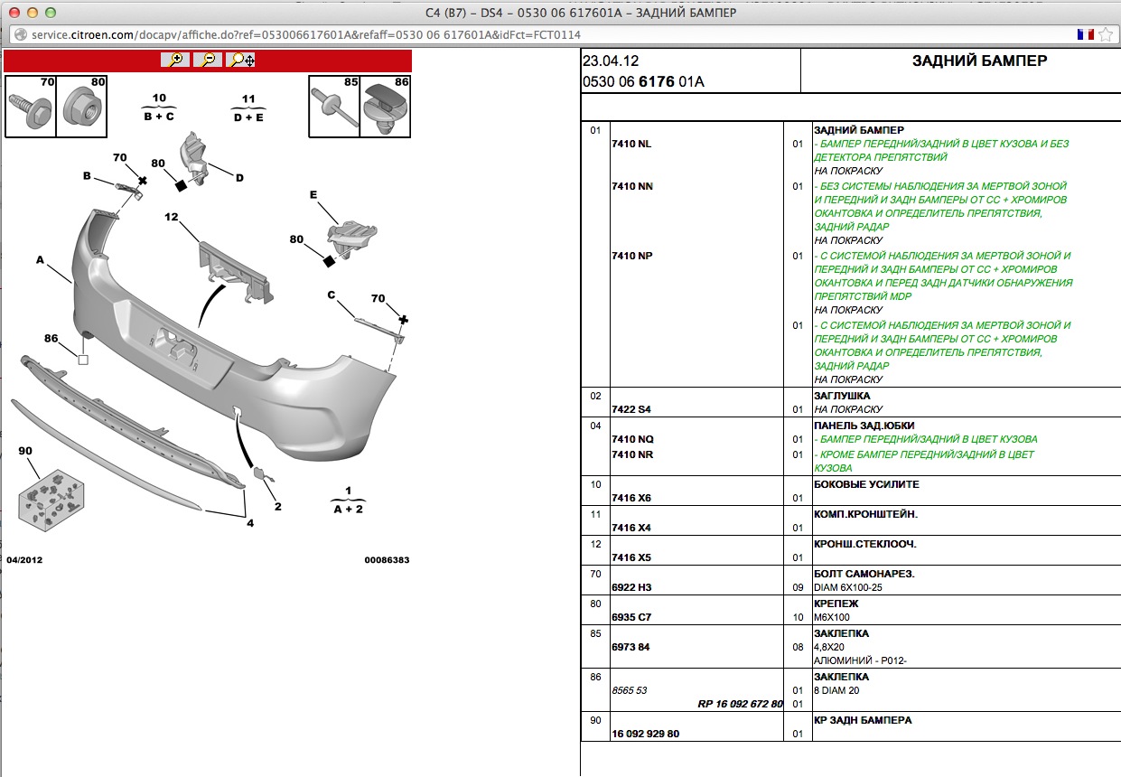 а "бампер" идет первым (01) пунктом с другими буквами после 7410, с ценой около 4,5к