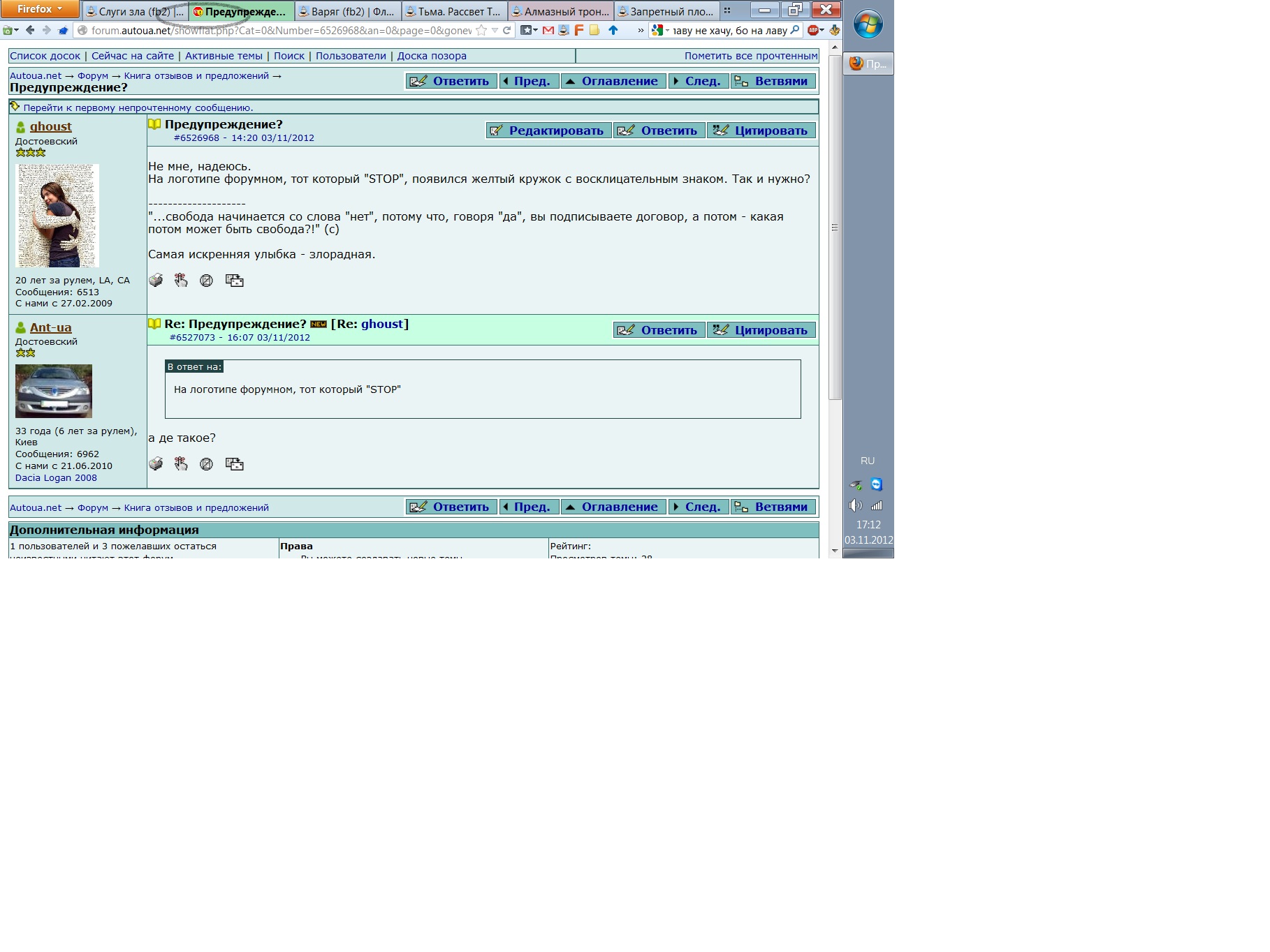 Спасибо за моральную поддержку. Все уже спят, одна я, из за разницы во времени, нервничаю. Подождём знающий народ, посмотрим, что скажут. Такая фишка только с форумом, все остальные вкладки работают нормально. Браузер - Лисичка.
