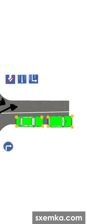 Почему синий не может въехать (имея приоритет на перекрестке!) на левую полосу?