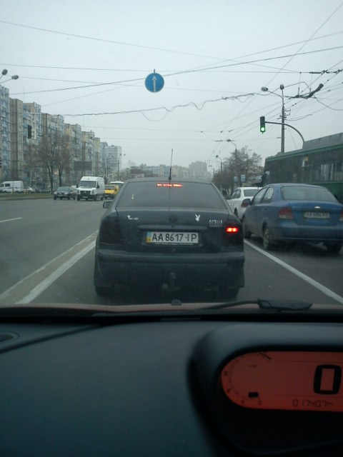 сегодня утром тошню себе в левом ряду, тут ...опа...чорный призрак, да еще с неработающим левым стопом...