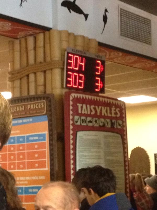 Я тут стоялО!!! Очередь в аквапарк, ни кто не толкается, подошел взял в автомате талончик и стой спокойно, пока загорится его номер на табло. Скучно)))) ни кто не кричит, что он с пяти утра тута стоял, что у него теща беременная в аэропорт спешит...