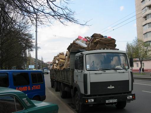 Неделю назад на Харьковском шоссе ехал КрАЗ с полуприцепом, на котором таким же макаром, только хуже, был загружен металлолом! Борта были буквально выгнуты, а груз за эти борта на полметра где-то высовывался! Жалко, сфотографировать не получилось, но я был больше обзабочен тем, чтобы от него подальше держаться...
