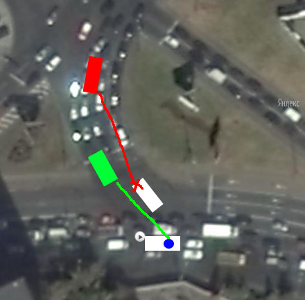 Картинка схематичная, "примерно так". Точное расположение машин на проезжей части можешь сам смоделировать и убедиться, что "чисто теоретически" зона ограниченной обзорности в любом случае имеется, и вопрос - только в цифрах (когда точно появится обзорность).