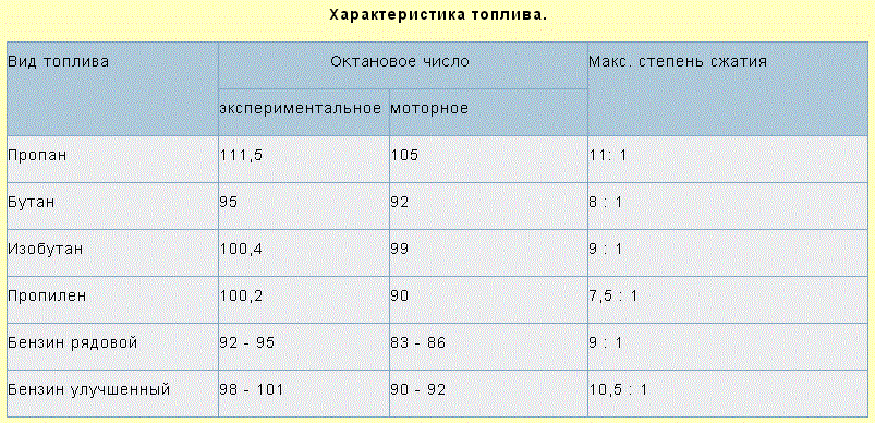 Откуда дровишки? Особенно по цифрам максимальной степени сжатия? Не вяжеццо оно у пропилена с его ОЧИ и ОЧМ, т.к. оба и характеризуют именно эту максимальную степень сжатия - детонационную стойкость ТВС.