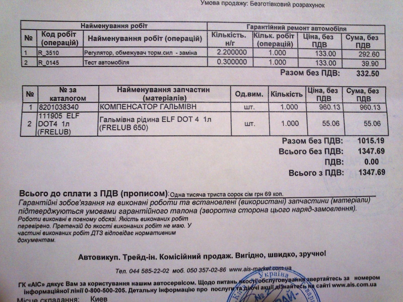 Еще наконец то оформили гарантийную замену на скрипучий регулятор тормозных усилий. Заказали, перезвоният когда приедет. Заодно получится бесплатная замена ТЖ раз в 3 года