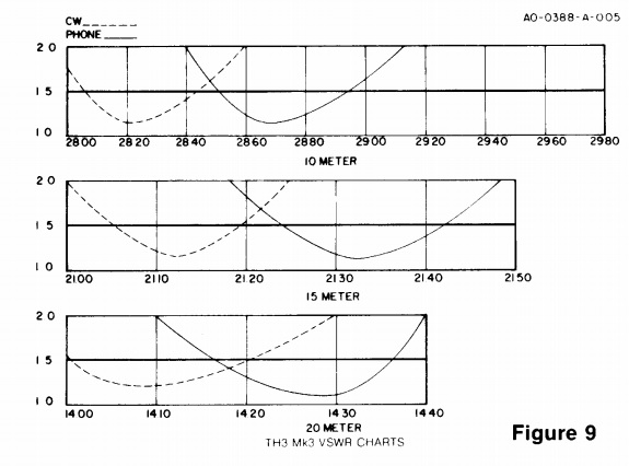 Антенну можно настроить по минимуму КСВ либо в телефон , либо в телеграф. Диаграммы КСВ из мануала. У меня настроено в SSB (сплошная линия графика). Реальные замеры показывают абсолютное совпадение с тем что в мануале, потому не вижу особого смысла их выкладывать.
