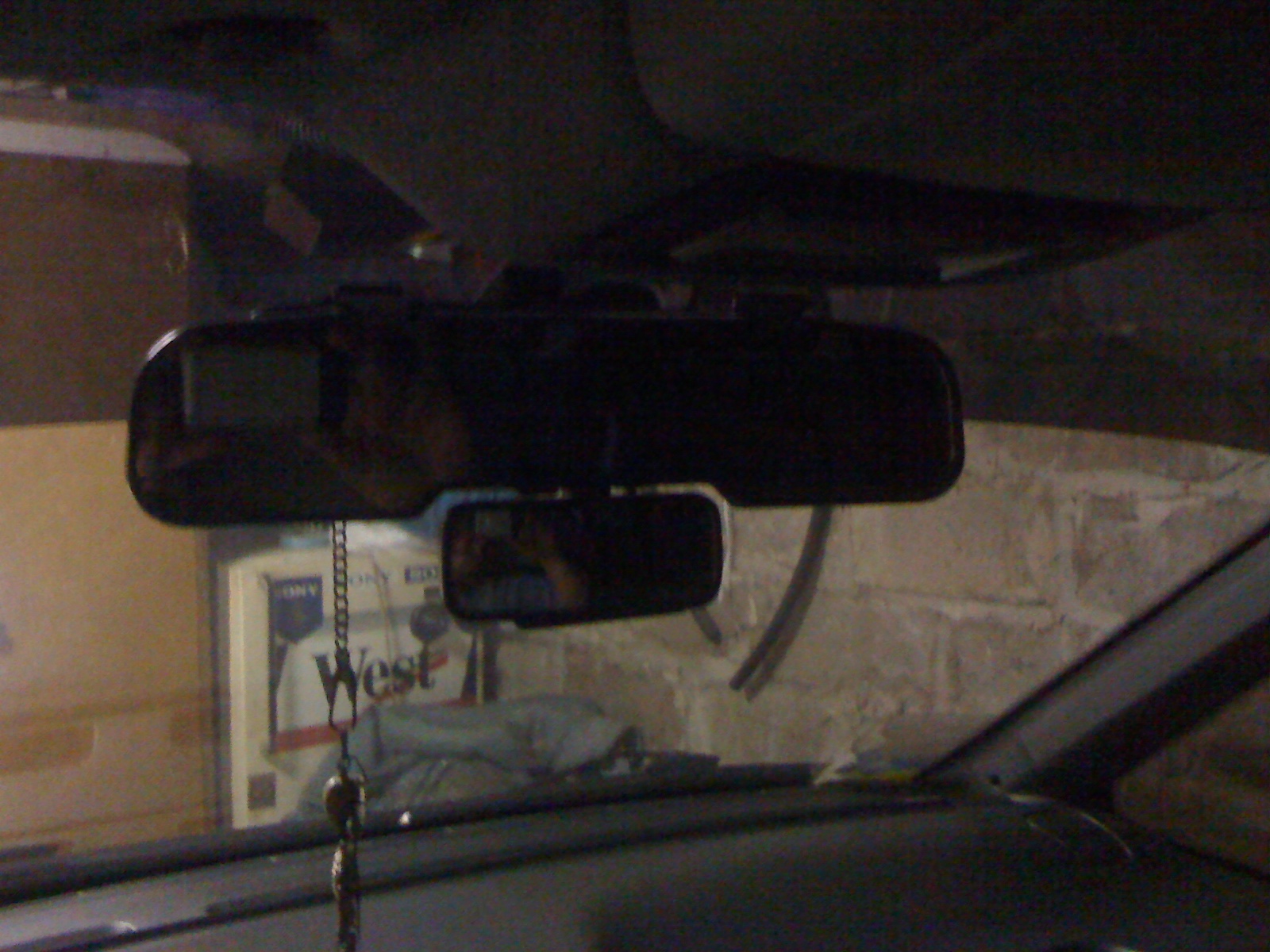 Самое удобное место либо точно под салонным зеркалом, либо чуть правее. Если рег маленький, то можно вообще за зеркало спрятать.