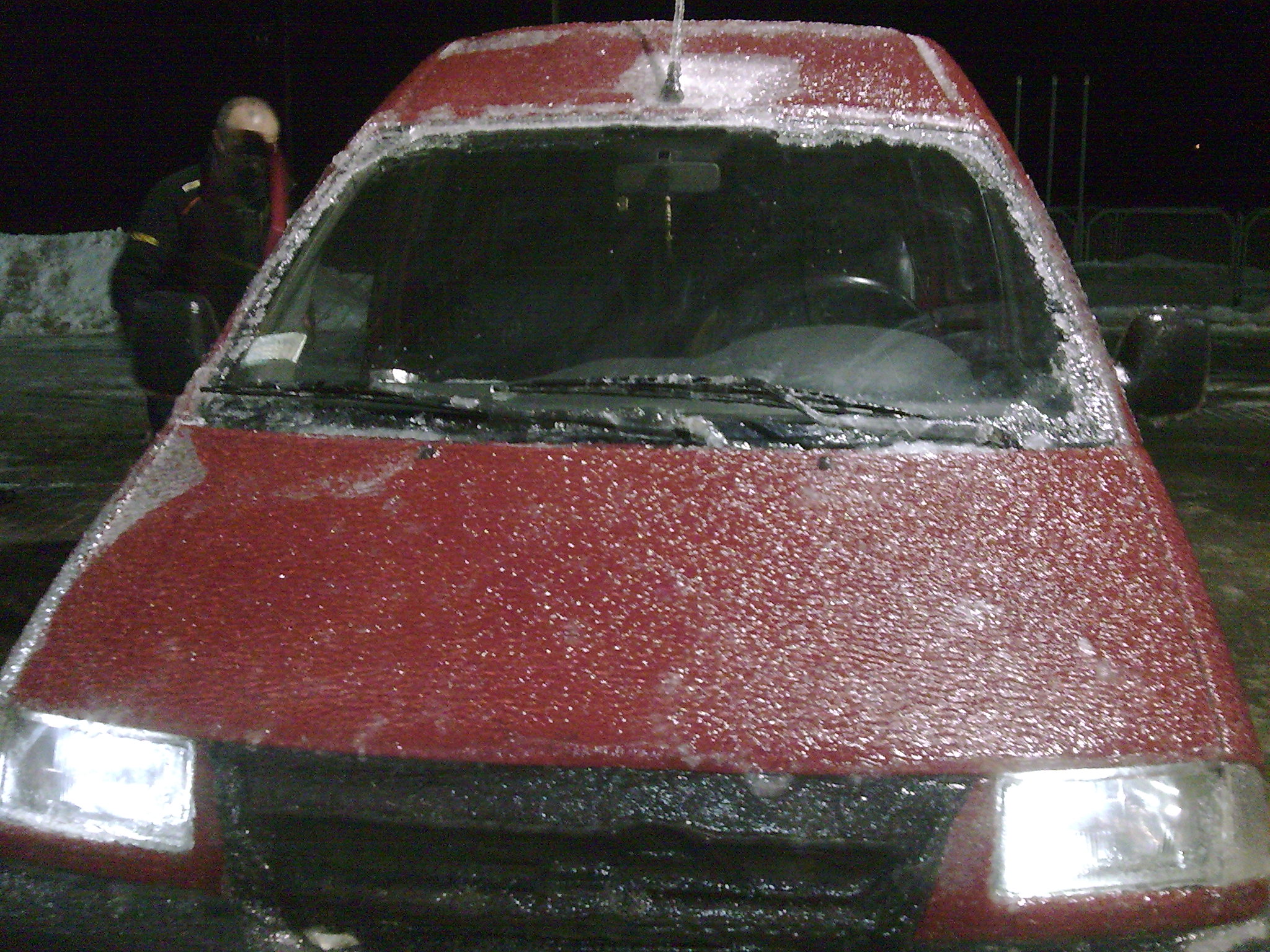 Гнал машину только купленную из Ровно в Киев вчера,выехали в 4 дня,приехал в Киев в 1 ночи.Это капец.При минус 5 идет ливень,аварий просто писец.Скорость минимальная.Дороги не чищены,и на лед и наледни намерзает дождь.Посыпать,сцуко,правилом дурного тона считается.