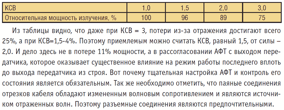 UT4UDT, обратная волна затухает в фидере так же, как и прямая. По этому если рассматривать КСВ с точки зрения генератора, то правильно мерять его "снизу", до фидера (получим отношение пока еще неослабленной прямой волны к уже затухающей обратной) - как оценка согласованности антенны, конечно, эта цифра ни о чем не скажет, зато при достаточной длине и достаточно малой толщине фидера очень легко получить почти ровно единицу. Но если серьезно, при КСВ=3 теряется приблизительно 25% мощности генератора на рассогласование (чуть больше одного децибела всего лишь), что ничтожно в обычной местной связи. Вот впоиске нашел вырезку из "Антенн" Ротхаммеля.