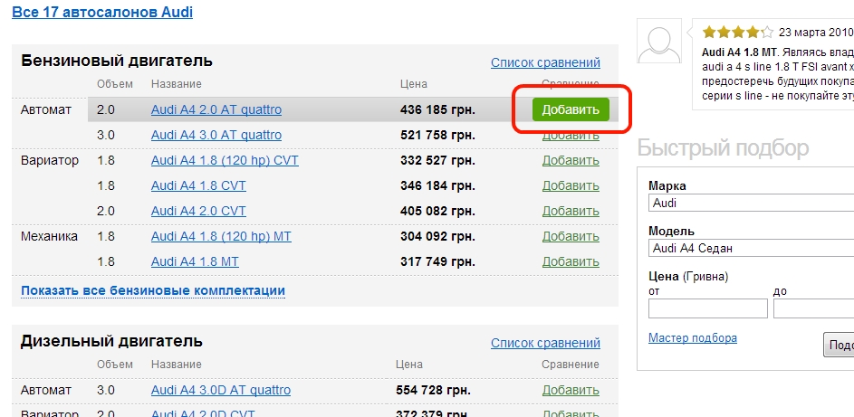 Re: Где делось сравнение авто?(((