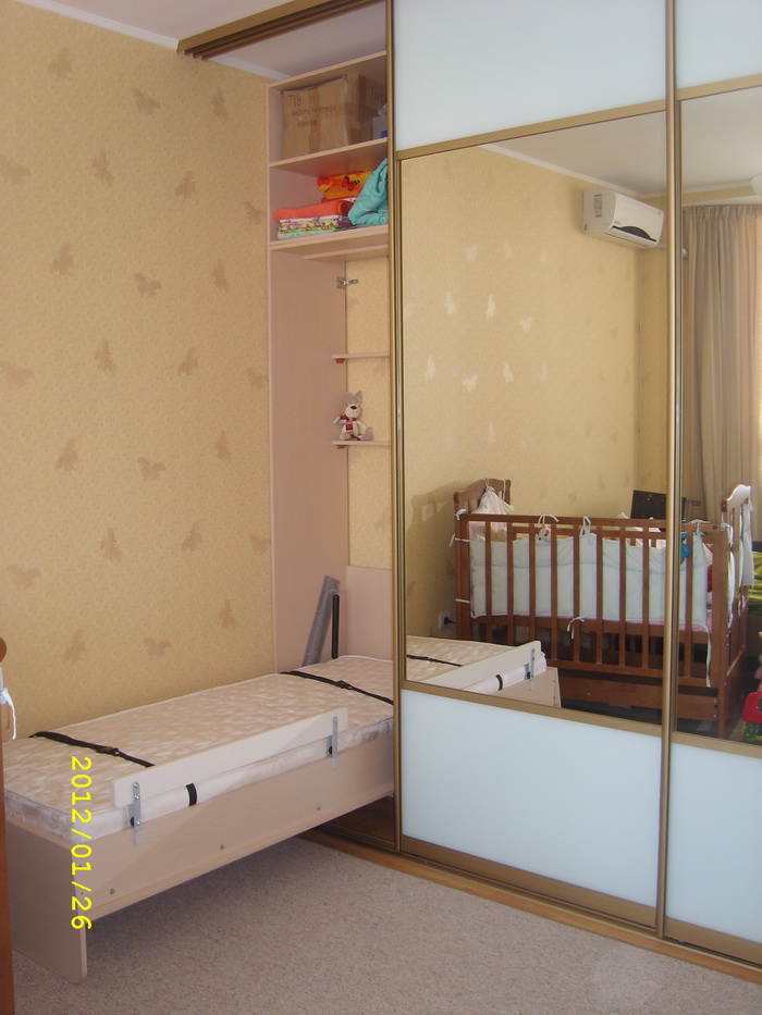 У друзей в Кракове похожий гостевой вариант. Штука удобная, хош кабинет без лишней мебели, хош вздремнуть или гостевое спальное место. Там главное, чтобы механизм был добротный и матрас, жить может долго. Если каждый день туда/сюда складывать для себя - морока, но с другой стороны, приучит ребенка к большей дисциплине (от родителей зависит): Встал, аккуратно сложил постель, убрал кровать в шкаф.