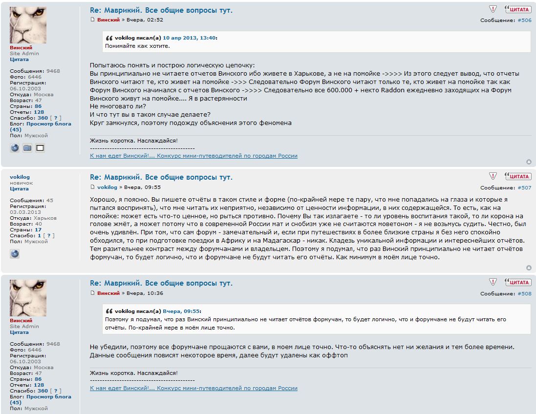 Кстати, по поводу Винского. В ходе разговора на форуме возник такой диалог: