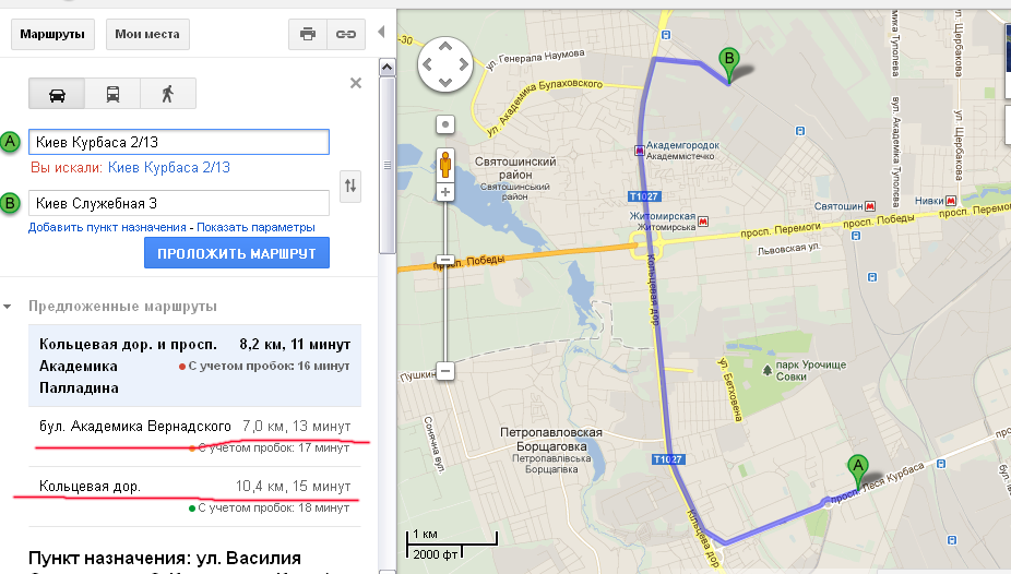 гугл молодца, все правильно проложил маршрут, светофоров минимум