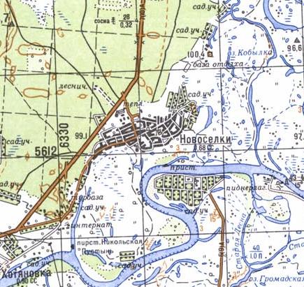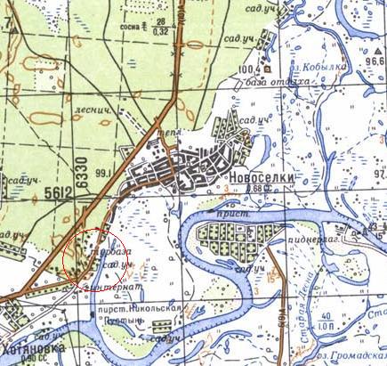 Прямо в центре кружочка. Проезжаем Хотяновку, при выезде основная трасса уходит налево, прямо указатель "Школа милиции" едем по этой дороге, она тоже асфальт, но уже. Справа проезжаем дачи, слева лес, упираемся в церковь, налево по грунтовке, потом она переходит в бетонку (плиты), как только справа начинается лес, заезжаем в первые ворота слева, потом шлагбаум. Это и есть "Сосновый бор".