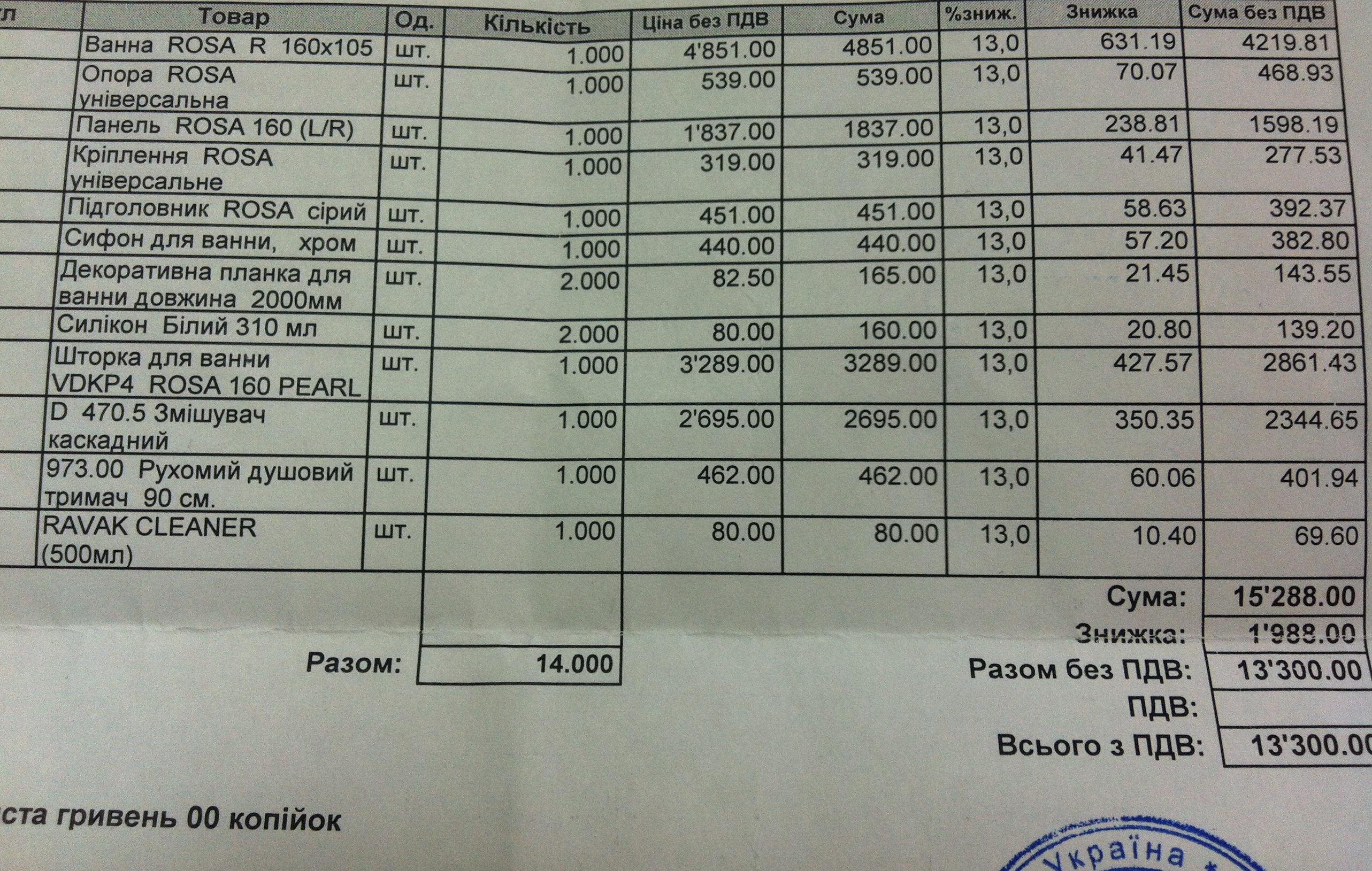 В итоге со скидкой 13 %, врезныс в ванную смесителем-ракушкой, с душем и планкой для душа на стену получилось вот :