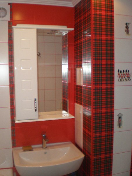 Там же сочетается красная плитка с белой, как по мне нормально смотрится