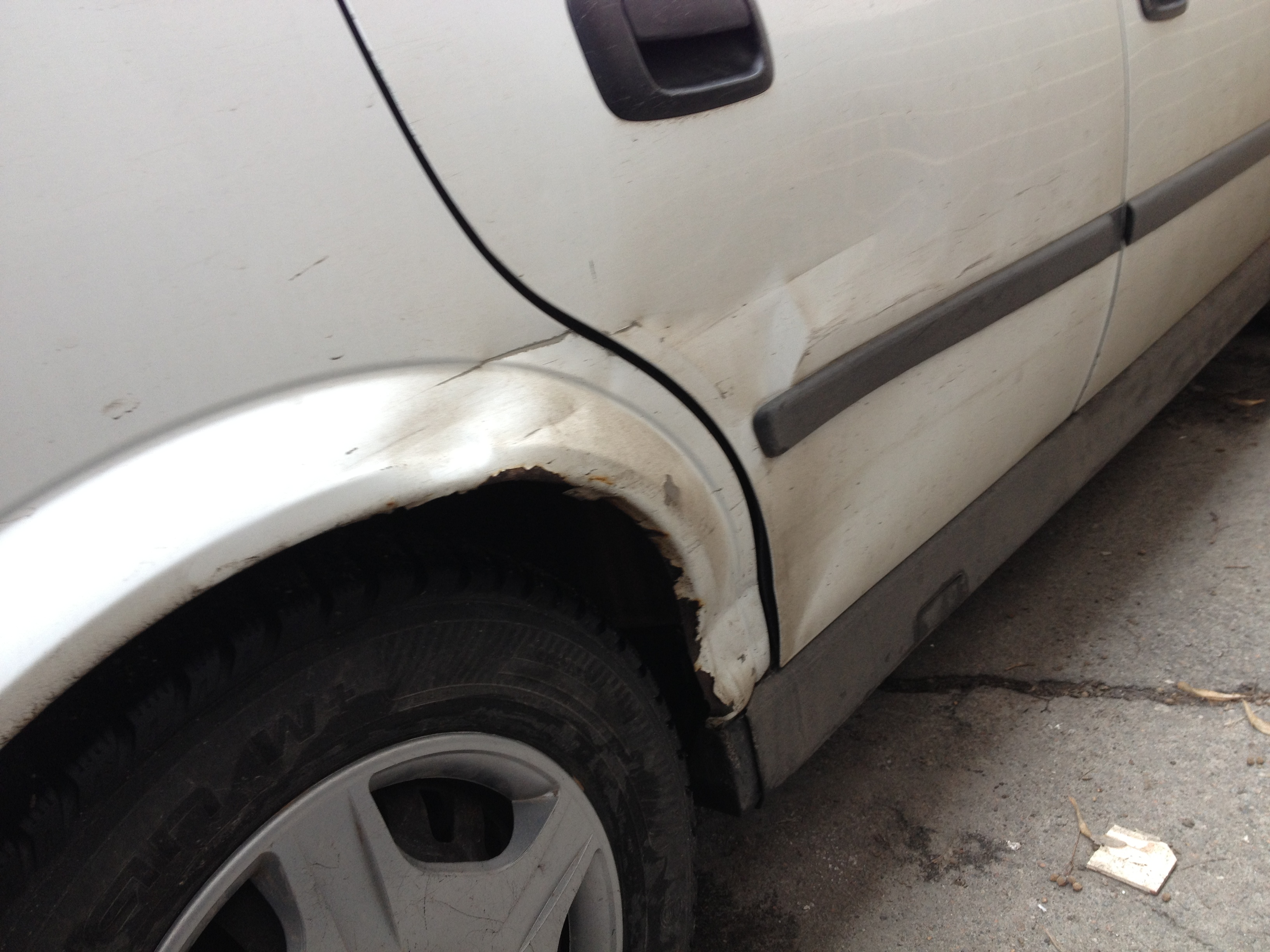 Дверь задняя - удар пришелся в усилительный элемент двери, поэтому опять-таки не факт, что рихтовка даст требуемое качество на выходе... Цена рихтовки: от 350 грн., цена покраски - 1000 грн. При замене двери: стоимость всех работ с дверью, в т.ч. материалы и покраска - 1500 грн.;