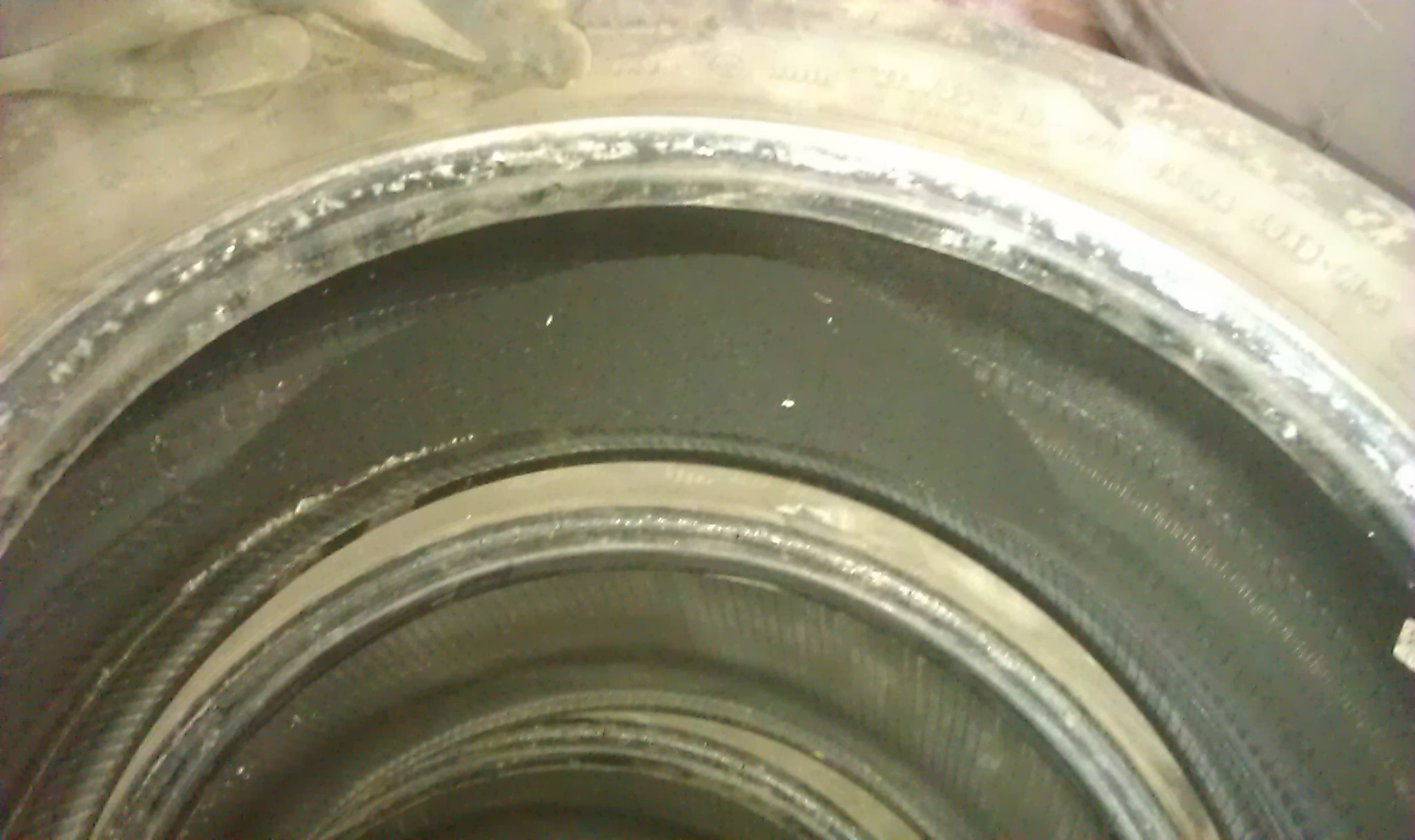 Получилтось так, что неожиданно полностью спустило колесо и я в таком состоянии проехал 3-4 км. Потом накачал и ездил спокойно дальше. Когда пришло время переобуваться, сняли покрышку с ддиска и обнаружили, что внутри напилено довольно много резины. Местами оголился корд.