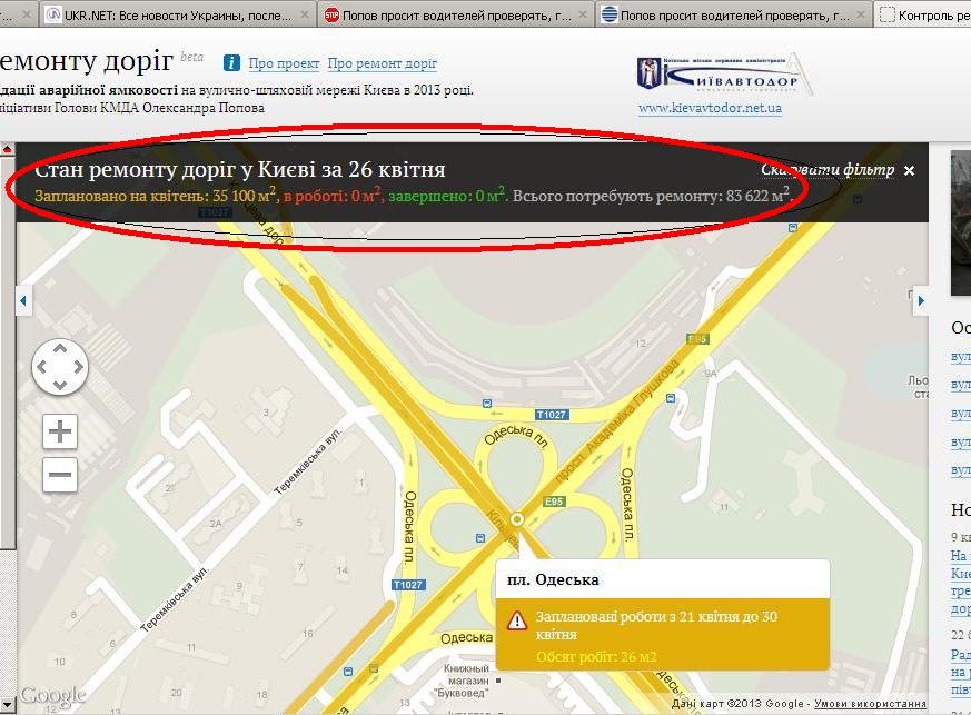 Зачем наговаривать? по ссылке дословно: "Председатель КГГА Александр Попов призывает киевлян-водителей активнее пользоваться услугами информационного сайта «Киевремконтроль» и планировать свои маршруты с учетом графика проведения ремонтных работ на дорогах города."