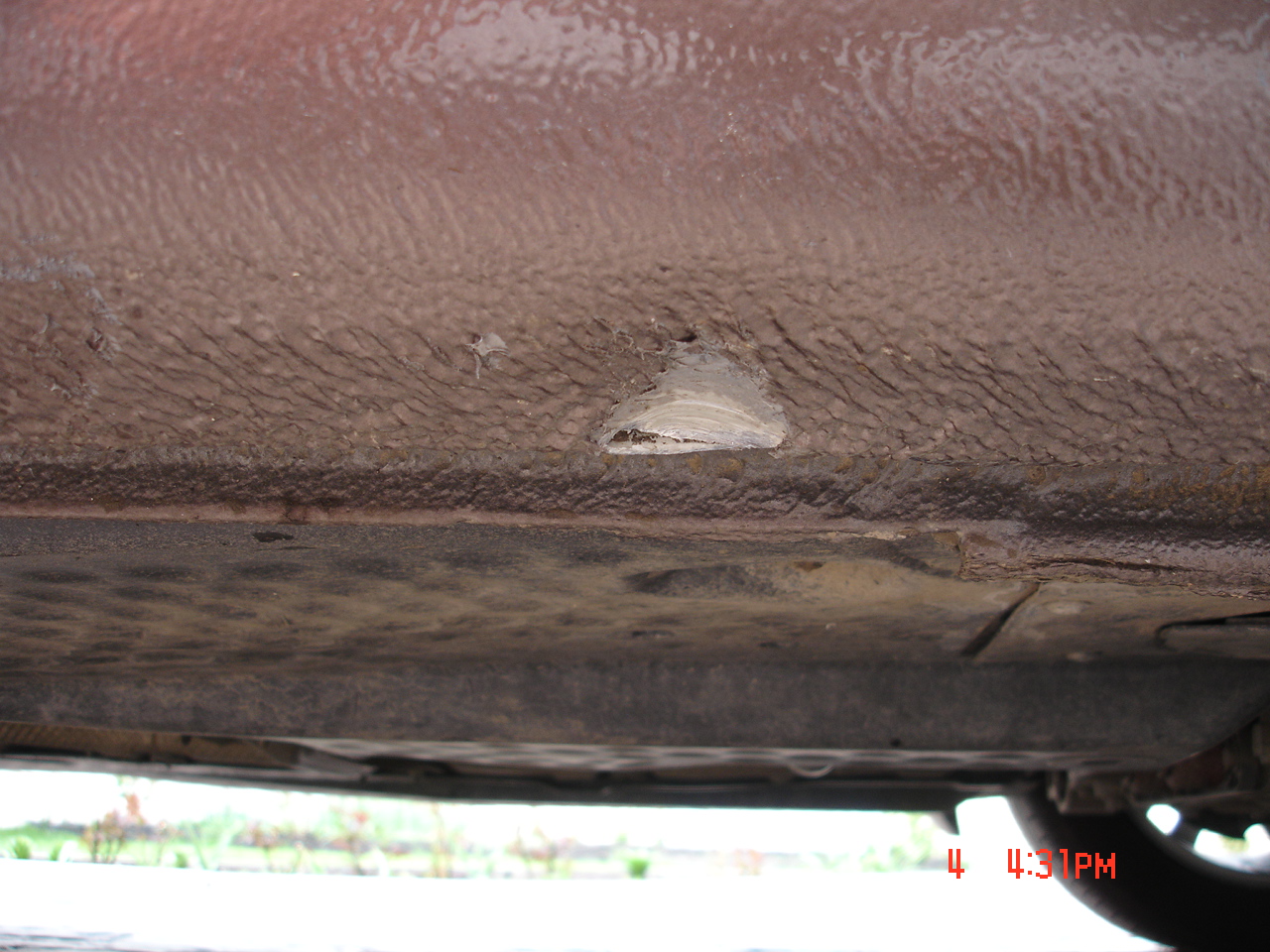 Замаж чем-то коричневым да и все. Мне когда-то место сварки мазали хренью от будущей ржавчины)) Она как раз такого же цвета +/-. Недавно смотрел - ржавчины нет) А уже 2 года прошло и место аакурат за задним правым колесом А то проблему нашли З.Ы.: ИМХуется мне, что это банальный камень, а не шиномонтаж
