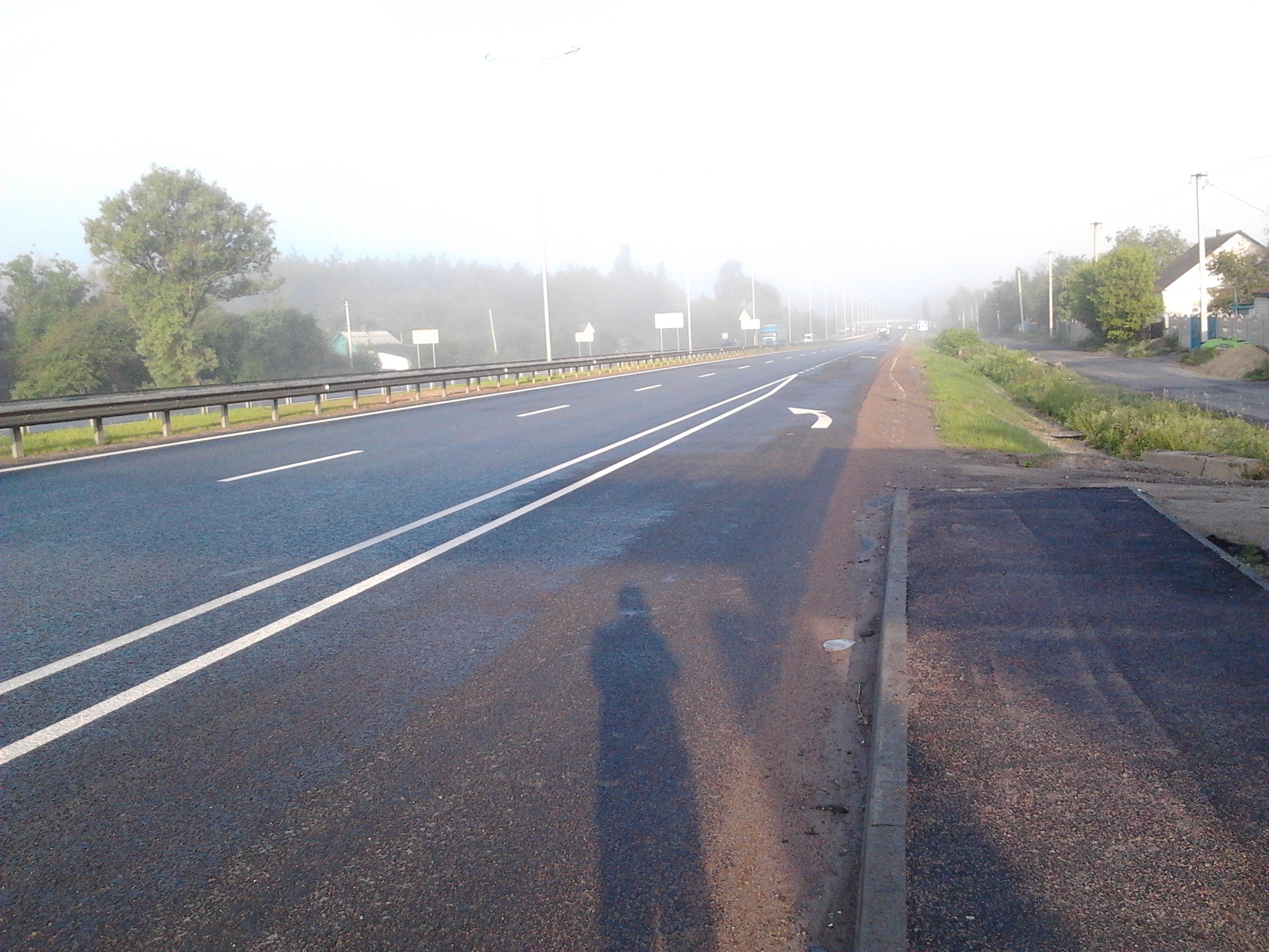 С остановки. На трассе Кипти-Глухов много таких остановок с отделением разметкой от второй полосы.