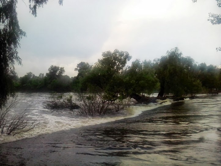 Ездил сегодня туда на разведку. Вода всё ещё бежит через дамбу. Но были желающие отдохнуть, которых не смущала вода по колено. При мне водную преграду преодолели бусик и KIA Soul.