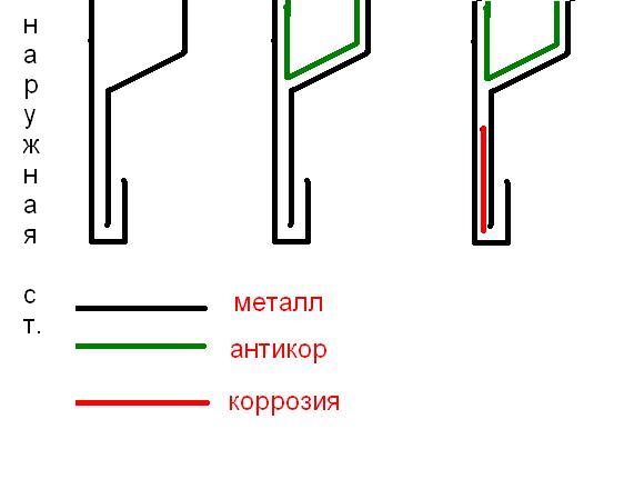Смотри схему. Примитивно тошо на коленке но оно так и есть, я уже на куче машин такое видел. Лист не оцинкован, тонкие щели для антикора недоступны, и имеем то, что имеем(с)