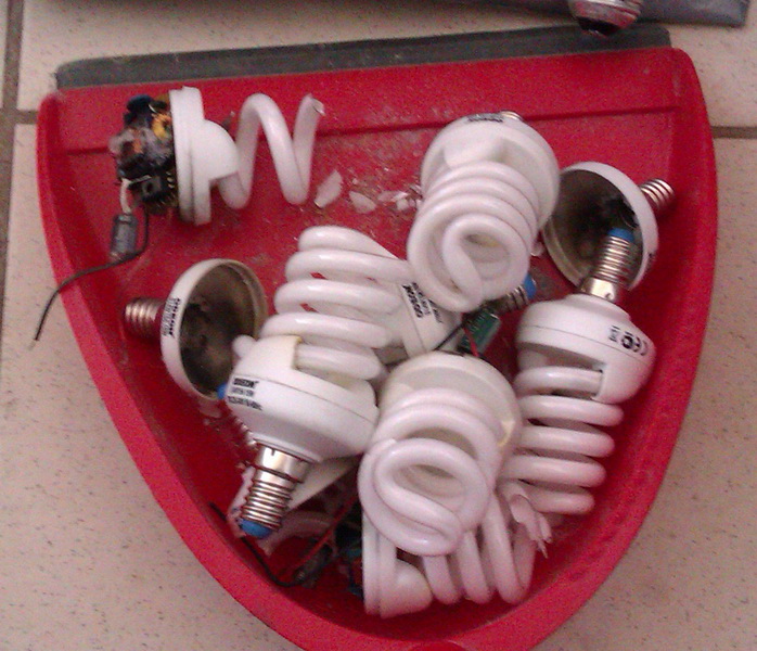 Кладбище лампочек. Из семи две корпус сохранили но задымились. Сгорели все 7 что в люстре было.