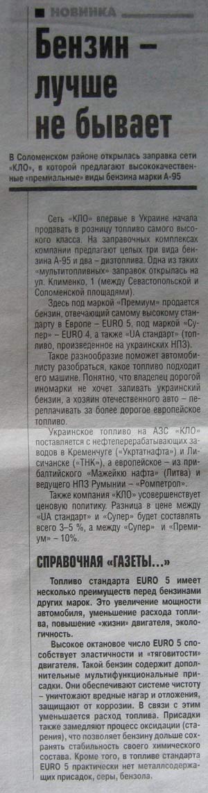 В продолжение о заправках – вот вырезка из газеты по киевски за июль.