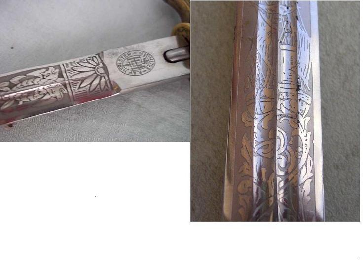 Есть информация, что ставили и чисто буквенное клеймо WKC, но на кортиках Кригсмарине такого не встречалось. Может быть, это и есть тот самый редкий случай. Под узором имелся в виду, не узор дамасской стали, а характерная именно для этого кортика гравировка в виде сцен из морской жизни (корабли, якоря и т.п.).