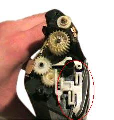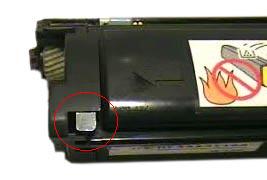 На рискнке показан зеркальце- это и есть та част которая отвечает за зброс катриджа надо снять крышку шестеренок и пкреставить ее во внутрь. После этого НЕЛЬЗЯ ВРАЩАТЬ вал катриджа, т.к. при этом зеркльце выдвинется и при установке в принтер он покажет старый катридж.