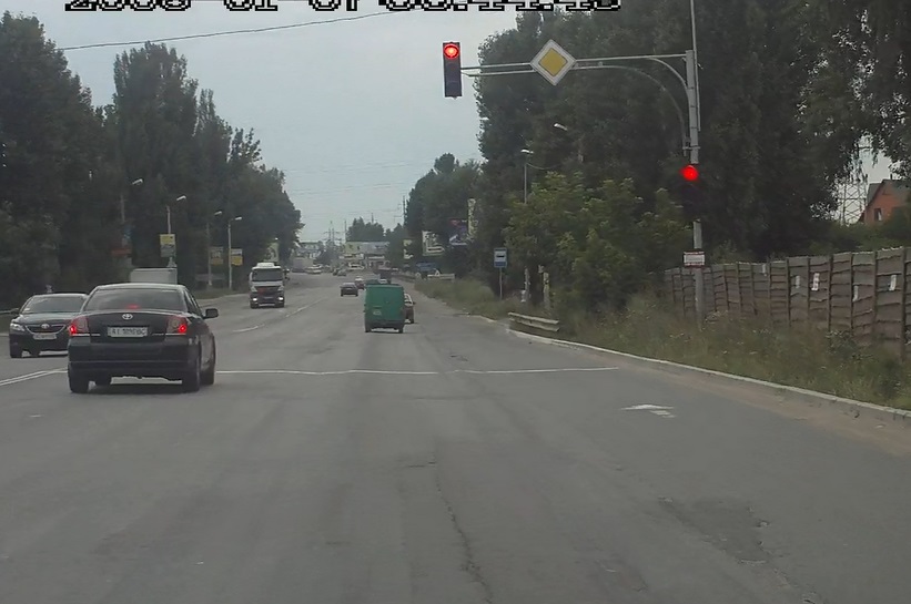 Светофор перед Вишневым, там выезд с нового жилого массива, не помню как называется. Я уехал как только загорелся зеленый. П.С. Регистратор DOD F900. Время и дата не установлены
