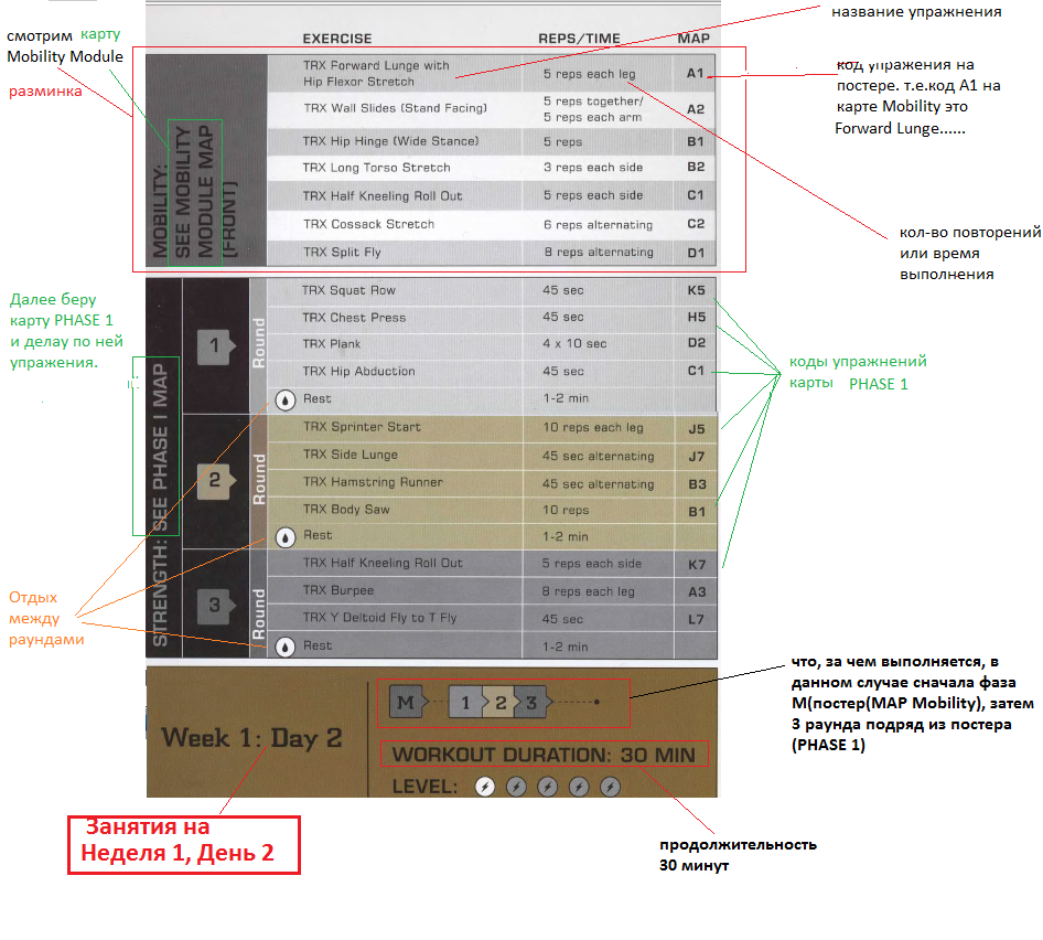 В мануале все интуитивно описано. Сейчас выполняю 3-ю фазу, прогресс ощутимый и не только на петлях, а и на сопутствующих упражнениях (турник, отжимания). Система занятий + правильное питание дало результат за несколько месяцев.