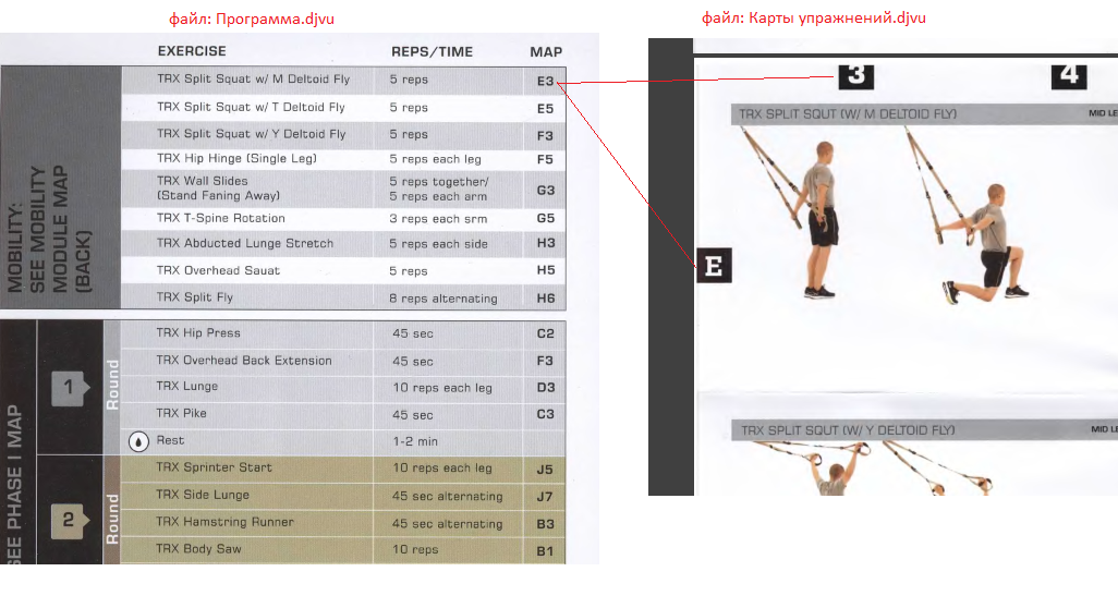 - Программа.djvu (программа упражнений. Со страницы 19 начинаются задания на каждый день. Беру листик с кодами заданий/повторениями + карту с нужной фазой = получаю силовую программу тренировки на сегодняшний день) Стр.19 - первый день Стр.20 - вотрой день Стр.21 - третий день Стр.22 - четвертый день.... и так расписано 12 недель системных занятий