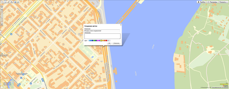 Отлично все ставится в браузере. Правая кнопка на месте на карте - Добавить метку.