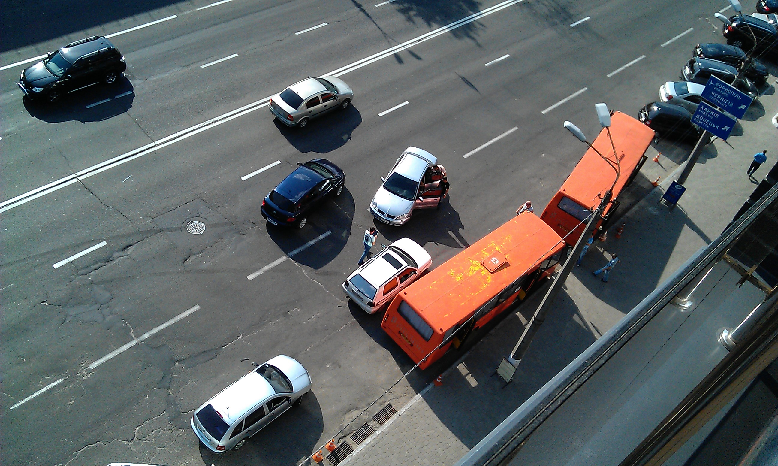Судя по съемке сверху сосед детектед а пробка была знатная, я как раз из офиса выезжал через пару минут после происшествия, как раз с машин вылазили. Там это далеко не первое подобное ДТП. Классика я бы даже сказал.