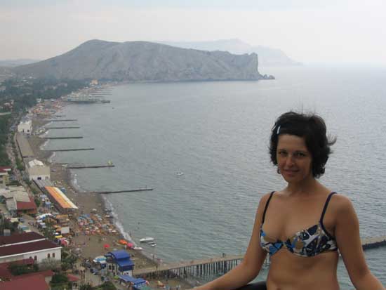 Проехали Алушту, Ялту, в городах жить не хотели, заехали в Гурзуф, посмотрели, вроде ничего так, проехал Никитский бот.сад (не сходил туда ) Ливадию. Решили поселиться в Мисхоре. НАчали искать жилье. Это не нравится, это дорого, это вообще в горах где бараны пасутся. Покатались мы так пару часов, расстроились дико. Из Судака съехали, тут не нравится, как жить Решили еще немного проехать. ПРиехали в Алупку, нашли халабуду за 30 уев, поставили машинку на стоянку 15грн сутки. В расстроенных чувствах спустились к пляжу - мама - а там сплошные черные камни и скалы. Любимая расплакалась, типа хочу домой, то есть в Судак, я и сам не против был вернуться после всего этого несчастного ЮБК. Вот нихрена не понял, за что там платить такие деньги?? Ну горы, да. Ай-Петри видели, канатную дорогу. Но какого так дорого ваше жилье. Занюханные нафтаолиновые 2 кроватки у бабульки в доме 30 баксов. До моря топать и топать. Причем вниз. Узко, тесно, людей тьма. Мигом забрали деньги за жилье и стоянку двинули обратно. Вот теперь я был сам не рад, что снова приходится ехать серпантином. К тому времени стемнело и в Судак уверенно затемно. Сняв снова тот же номер, мы благополучно дожили остаток нашего отпуска, чему мы оба рады Попутно сходили в местную крепость, надо отдань дань предкам, солидно.