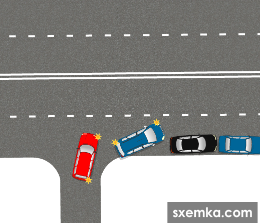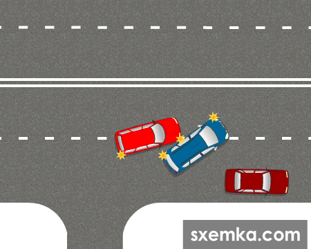 Оба стоят в таком положении как на картинке и ждут дырки. Она появляется и оба одновременно начинают движение, происходит контакт, кто виноват?
