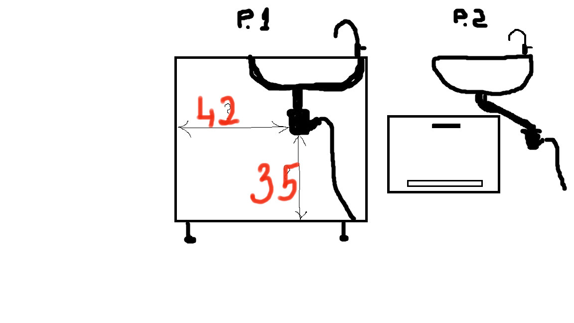 Есть кухонная мойка встроеная в кухонную столешницу(рис.1). Хочеццо вставить ПМ под мойку и соответственно стал впрос по размерам. Сифон(от мойки) слишком длинный, можно ли как-то его сместить и как на рис. 2?