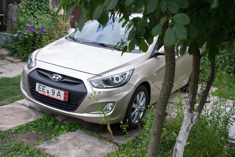Оставлю отзыв о своей машинке-может кому будет интересно. Hyundai Accent\Solaris 2011 (первая партия) 1,6 на механике.Комплектация Комфорт. На данный момент пробег 71тыс.Расскажу о минусах и плюсах. Плюсы: 1)Мотор 1.6 123 л.с. очень бодрый.Мне мощности хватает как для города,так и для трассы. 2)Запчасти и ТО по карману не бьют (средняя стоимость ТО у ОД составляет 1100-1200 грн). 3)Средний расход в городе - от 7 до 7,5 литров (это с учетом пробок.Темп езды обычный (не пенсионерский)).Расход на трассе - 5.5 литров.Дать под хвост (а машина позволяет) - около 9 литров. 4)Экстерьер и интерьер интересней чем у конкурентов (ИМХО). 5)За 71тыс ничего кроме расходников (и амиков по гарантии) не менялось (Тьху,тьху,тьху). 6)Двигатель легко ходит по 300тыс.км (инфа из солярис клуба 100%). 7)Довольно большое кол-во на дорогах - нет проблем с запчастями. 8)Размер багажника-просто огромный как для такой машины.