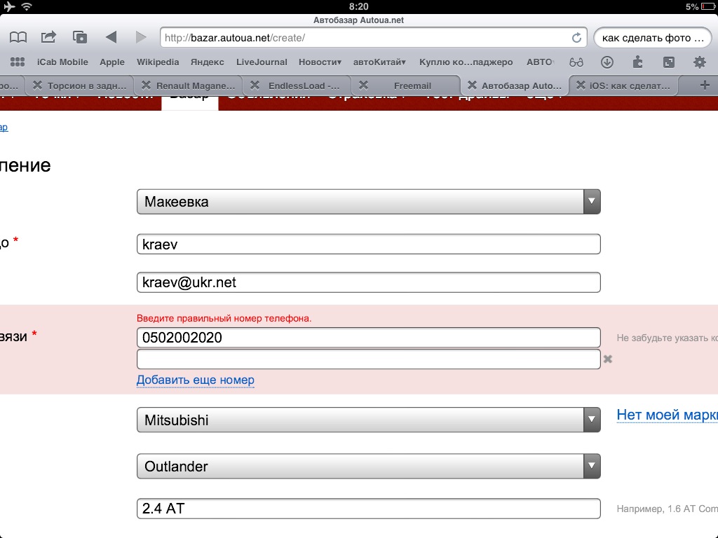 Подсказки, в каком формате писать, явно не хватает. Хотя б маску сделали