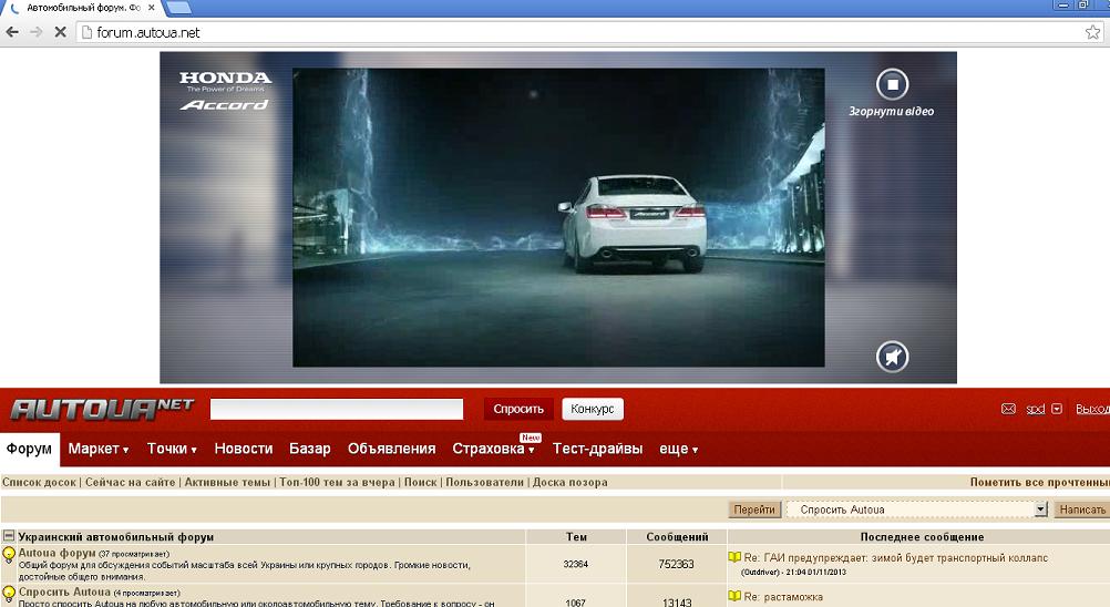 spd 01.11.2013 22:04 пишет:Так надо или случайно получилось? Появляется при входе на форум, потом исчезает. Никогда в жизни теперь даже не посмотрю в сторону Хонды Аккорд
